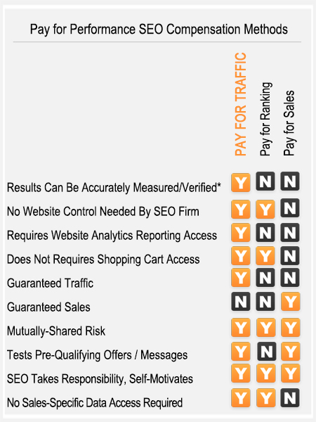 There are different methods for delivering "pay for performance SEO" including:
